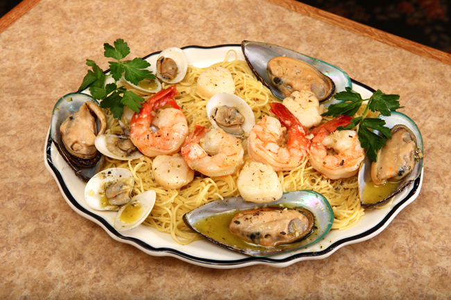 - (Served over pasta...clams, scallops, shrimp and mussels)